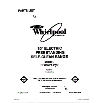 Parts for Whirlpool RF365PXYW0: 01 - Cover Parts