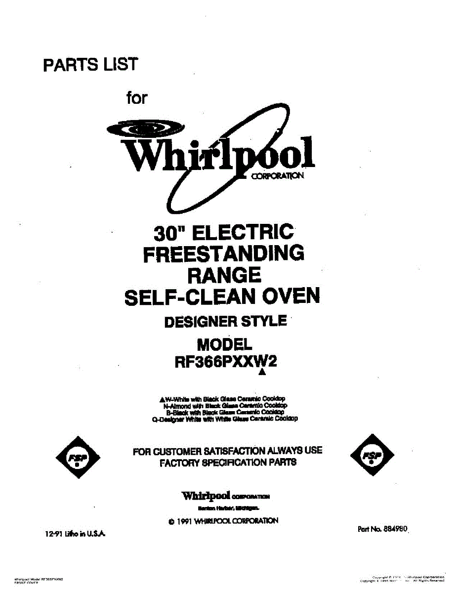 Parts for Whirlpool RF366PXXB2: 01 - Cover Parts