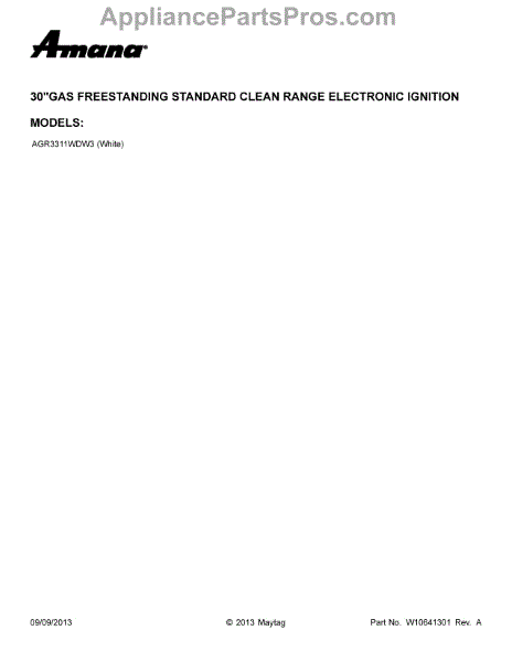 Parts for Amana AGR3311WDW3: 01 - Cover Sheet Parts