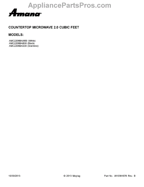 Parts for Amana AMC2206BAB00: 01 - Cover Sheet Parts