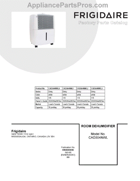 Parts for Electrolux CAD304NWL1: 01 - Cover Sheet Parts