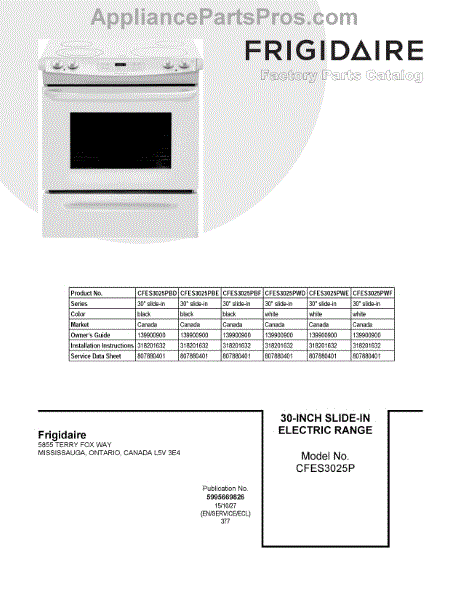 Parts for Electrolux CFES3025PWF: 01 - Cover Sheet Parts