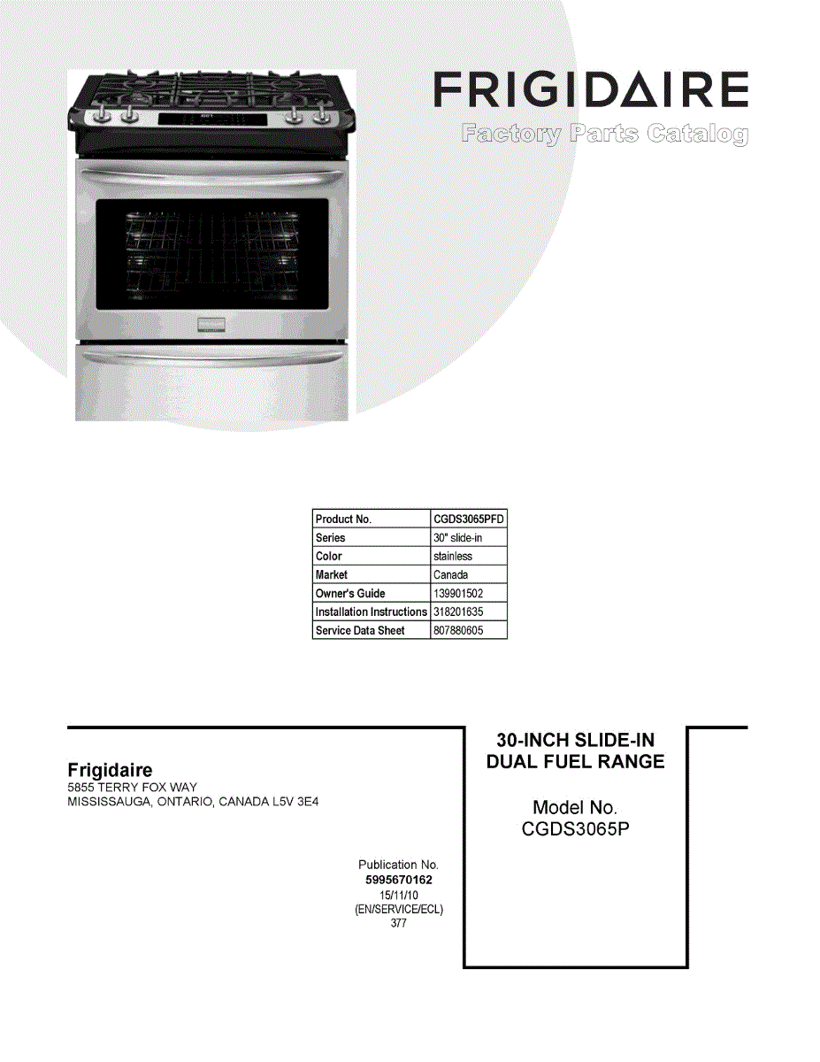 Parts for Electrolux CGDS3065PFD: 01 - Cover Sheet Parts