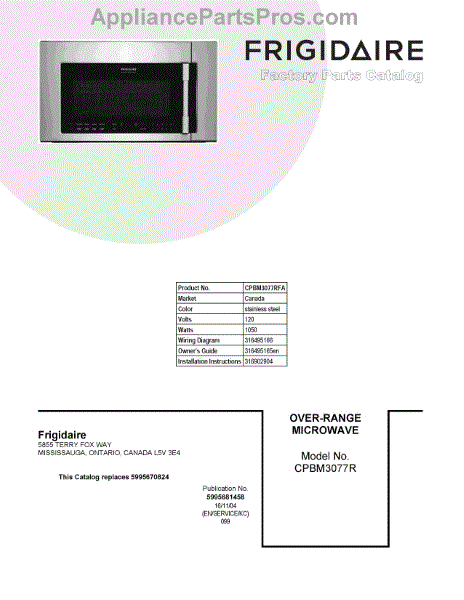 Parts for Electrolux CPBM3077RFA: 01 - Cover Sheet Parts