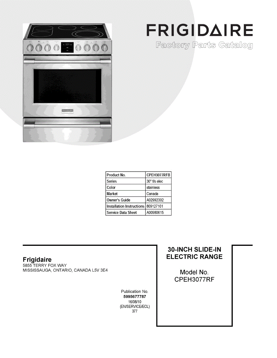 Parts for Electrolux CPEH3077RFB: 01 - Cover Sheet Parts