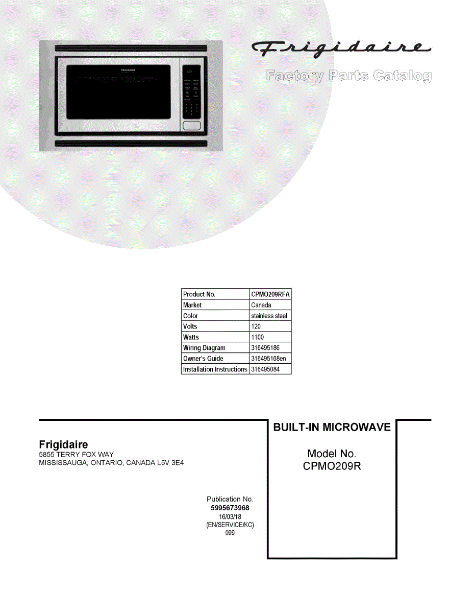 Parts for Electrolux CPMO209RFA: 01 - Cover Sheet Parts