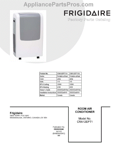 Parts for Electrolux CRA12EPT114: 01 - Cover Sheet Parts