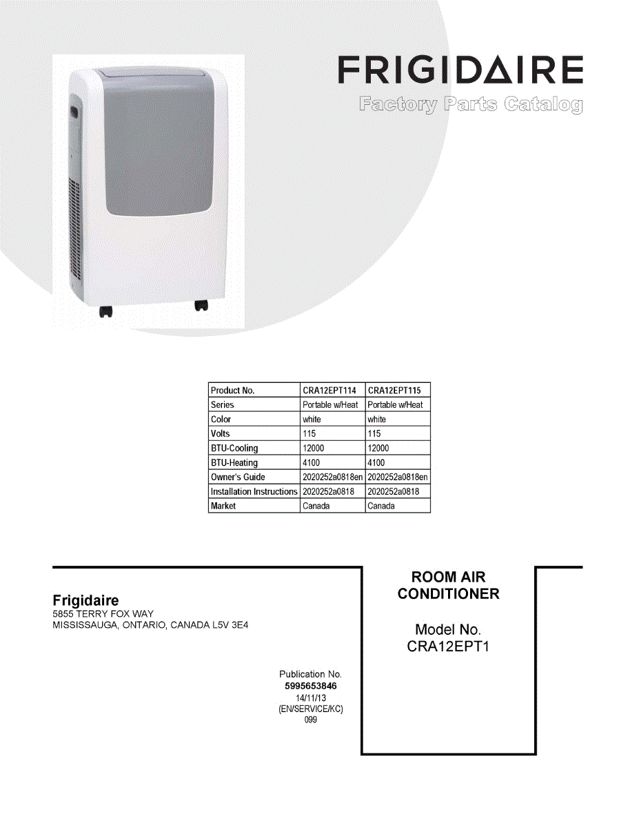 Parts for Electrolux CRA12EPT115: 01 - Cover Sheet Parts