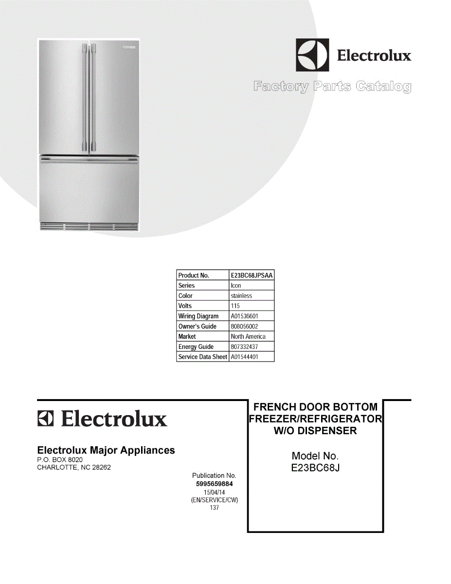 Parts for Electrolux E23BC68JPSAA: 01 - Cover Sheet Parts