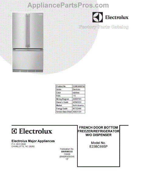 Parts for Electrolux E23BC69SPS0: 01 - Cover Sheet Parts
