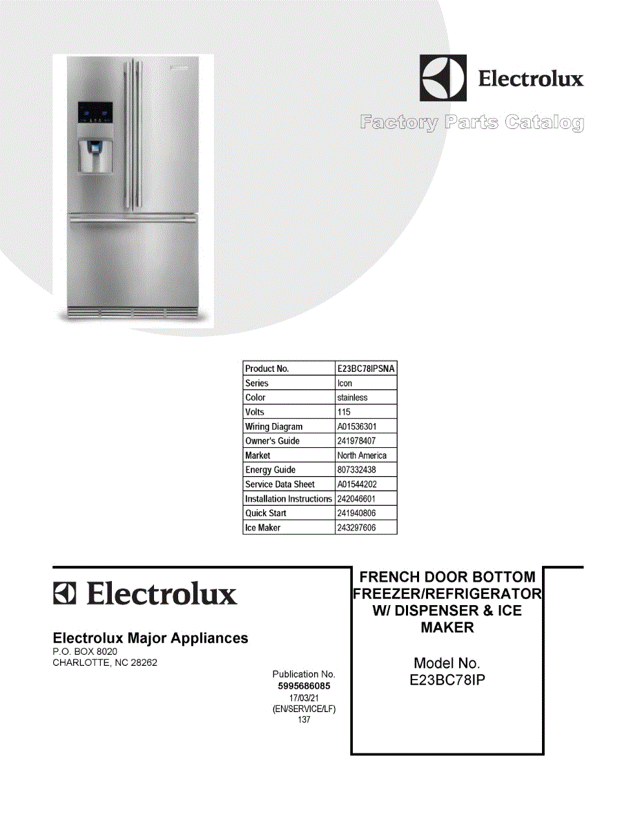 Parts for Electrolux E23BC78IPSNA: 01 - Cover Sheet Parts