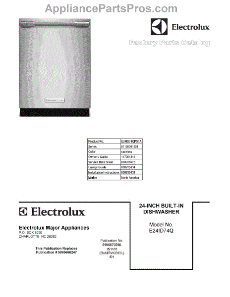 Parts for Electrolux E24ID74QPS1A: 01 - Cover Sheet Parts