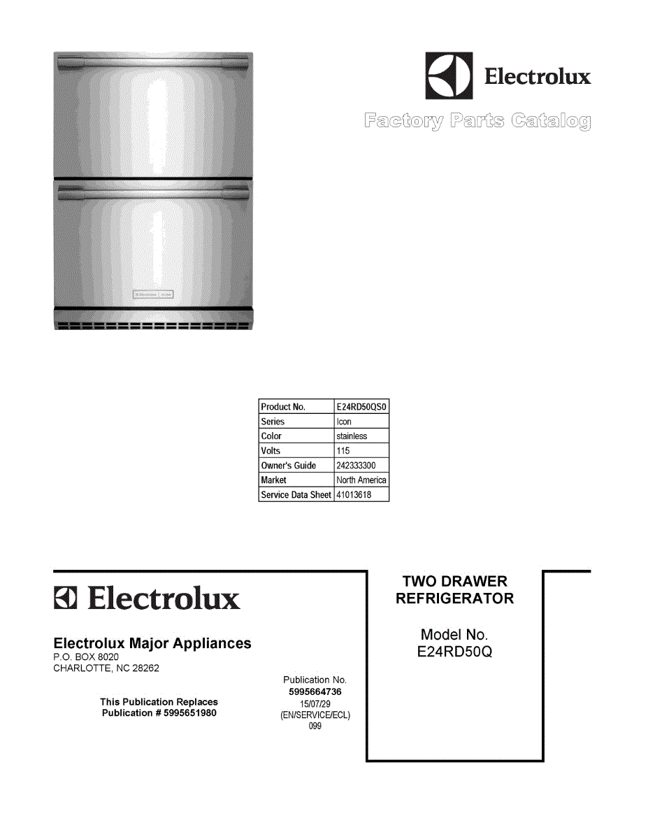 Parts for Electrolux E24RD50QS0: 01 - Cover Sheet Parts