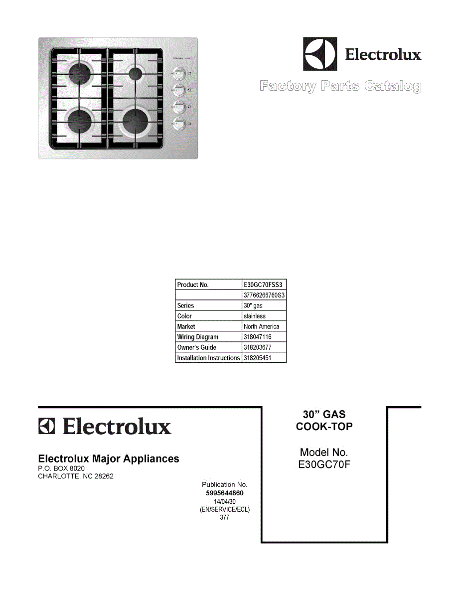 Parts for Electrolux E30GC70FSS3: 01 - Cover Sheet Parts