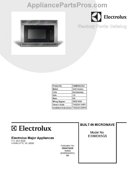Electrolux Microwave Parts