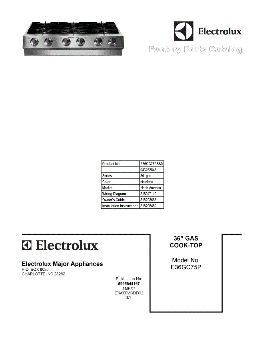 Electrolux Cooktop Parts