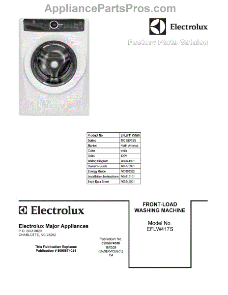 Parts for Electrolux EFLW417SIW0: 01 - Cover Sheet Parts