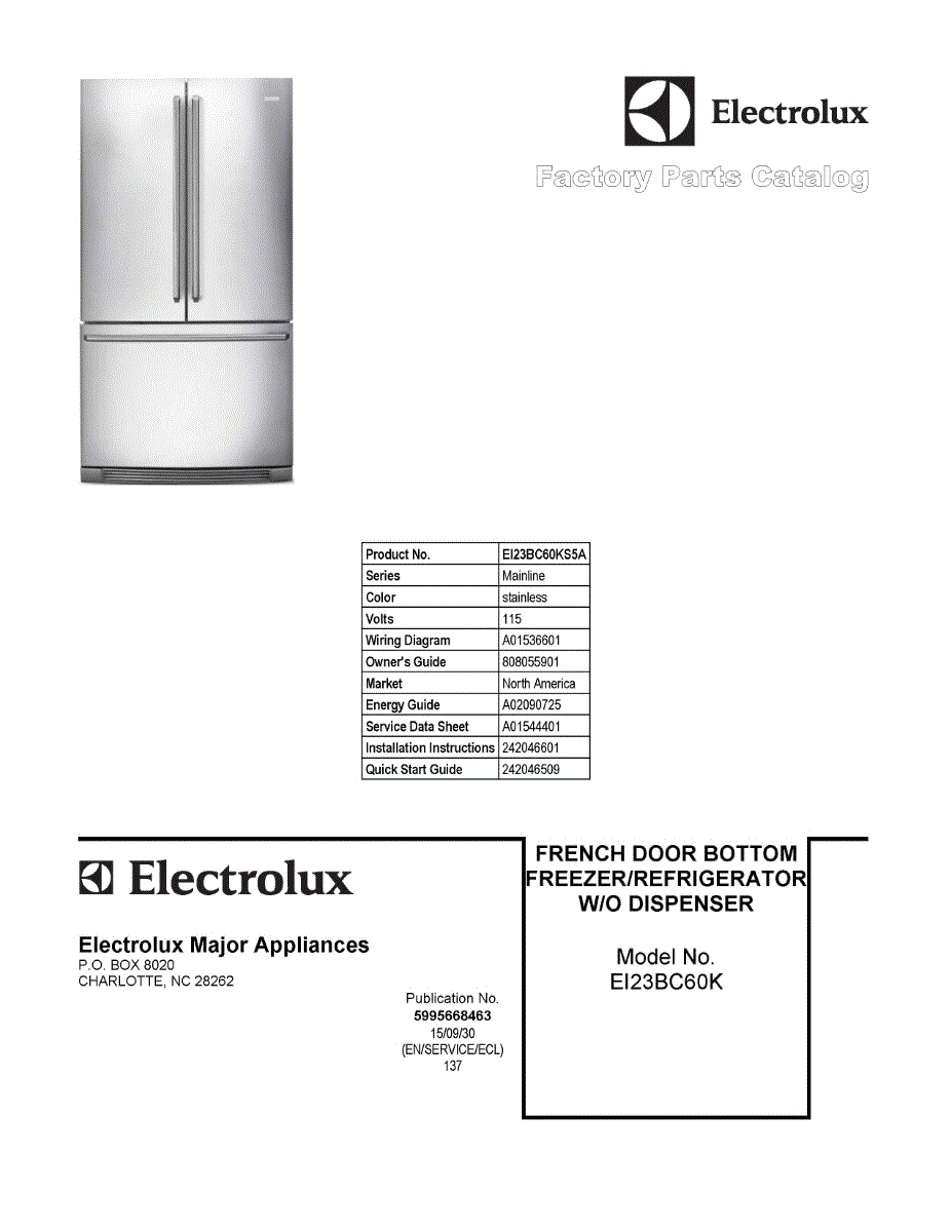 Parts for Electrolux EI23BC60KS5A: 01 - Cover Sheet Parts