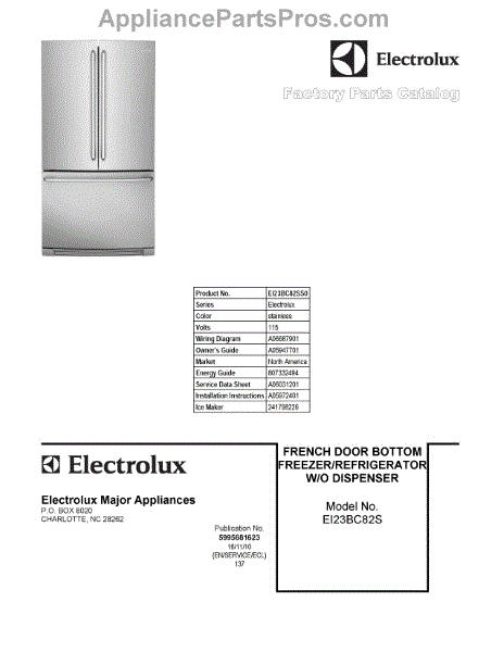Parts for Electrolux EI23BC82SS0: 01 - Cover Sheet Parts