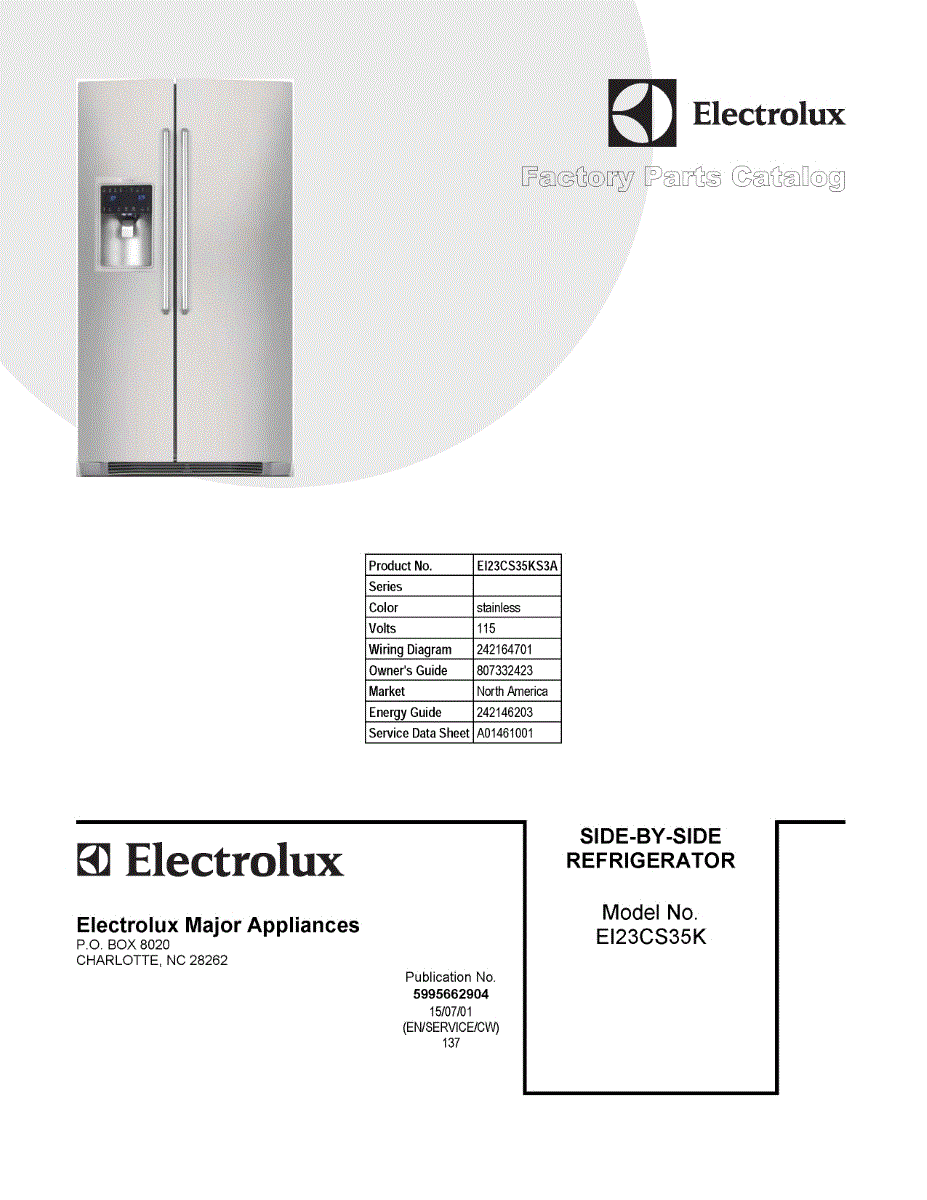 Parts for Electrolux EI23CS35KS3A: 01 - Cover Sheet Parts