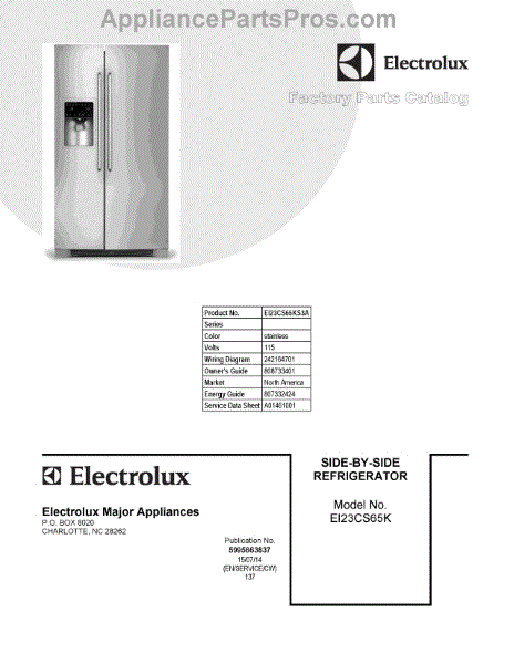 Parts for Electrolux EI23CS65KS3A: 01 - Cover Sheet Parts