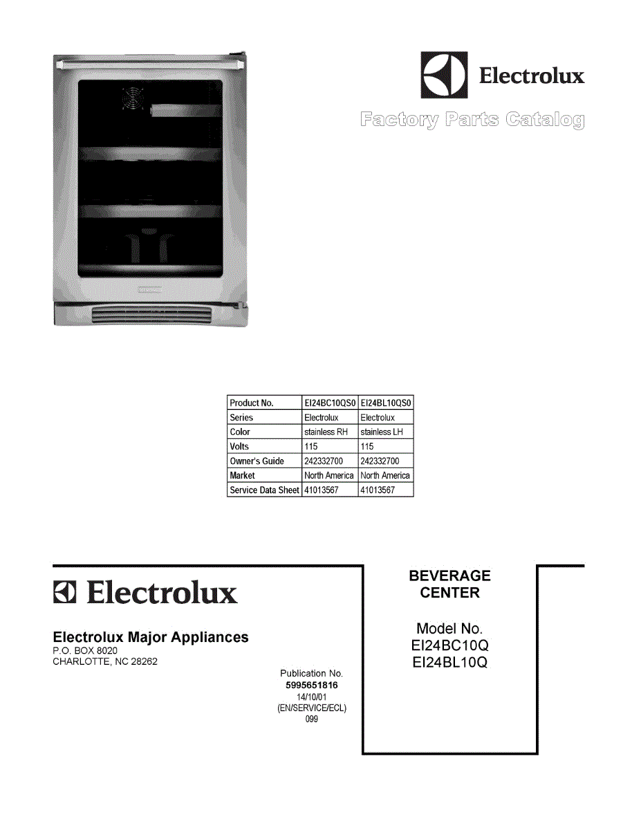 Parts for Electrolux EI24BC10QS0: 01 - Cover Sheet Parts