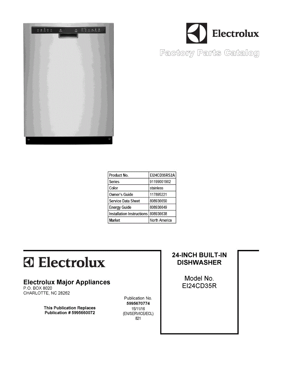 Parts for Electrolux EI24CD35RS2A: 01 - Cover Sheet Parts