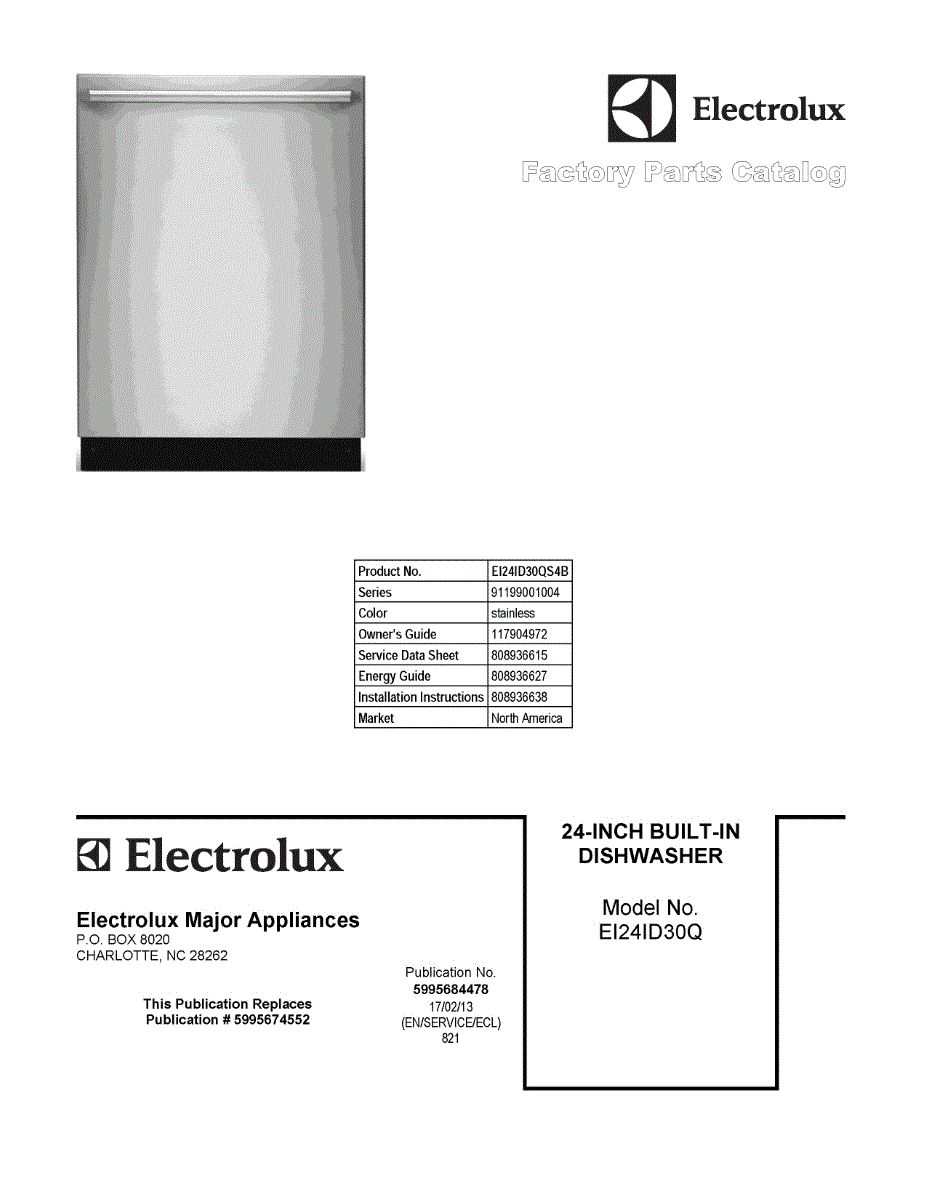 Parts for Electrolux EI24ID30QS4B: 01 - Cover Sheet Parts
