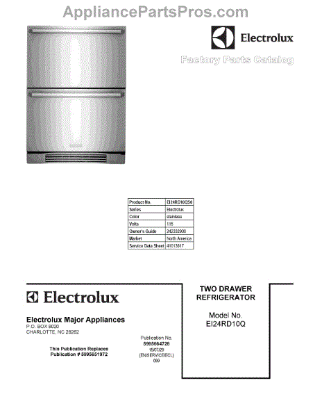 Parts for Electrolux EI24RD10QS0: 01 - Cover Sheet Parts