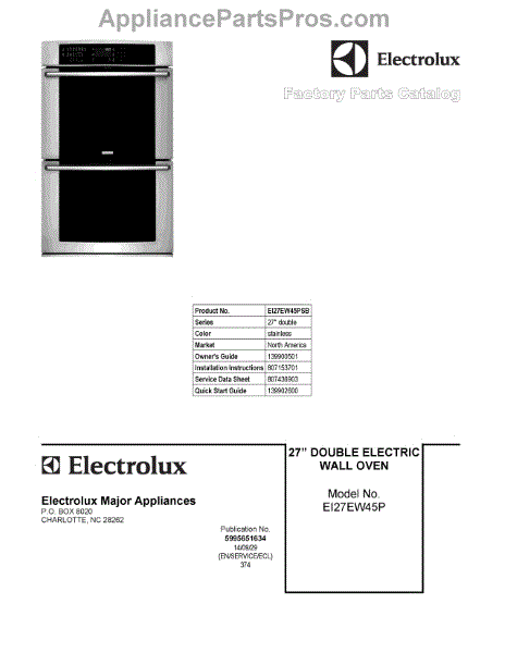 Parts for Electrolux EI27EW45PSB: 01 - Cover Sheet Parts