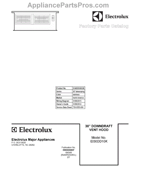 Parts for Electrolux EI30DD10KSB: 01 - Cover Sheet Parts