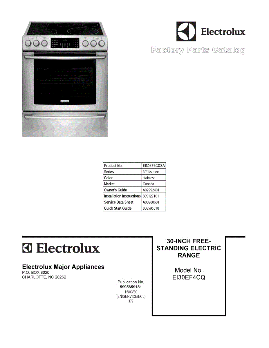 Parts for Electrolux EI30EF4CQSA: 01 - Cover Sheet Parts