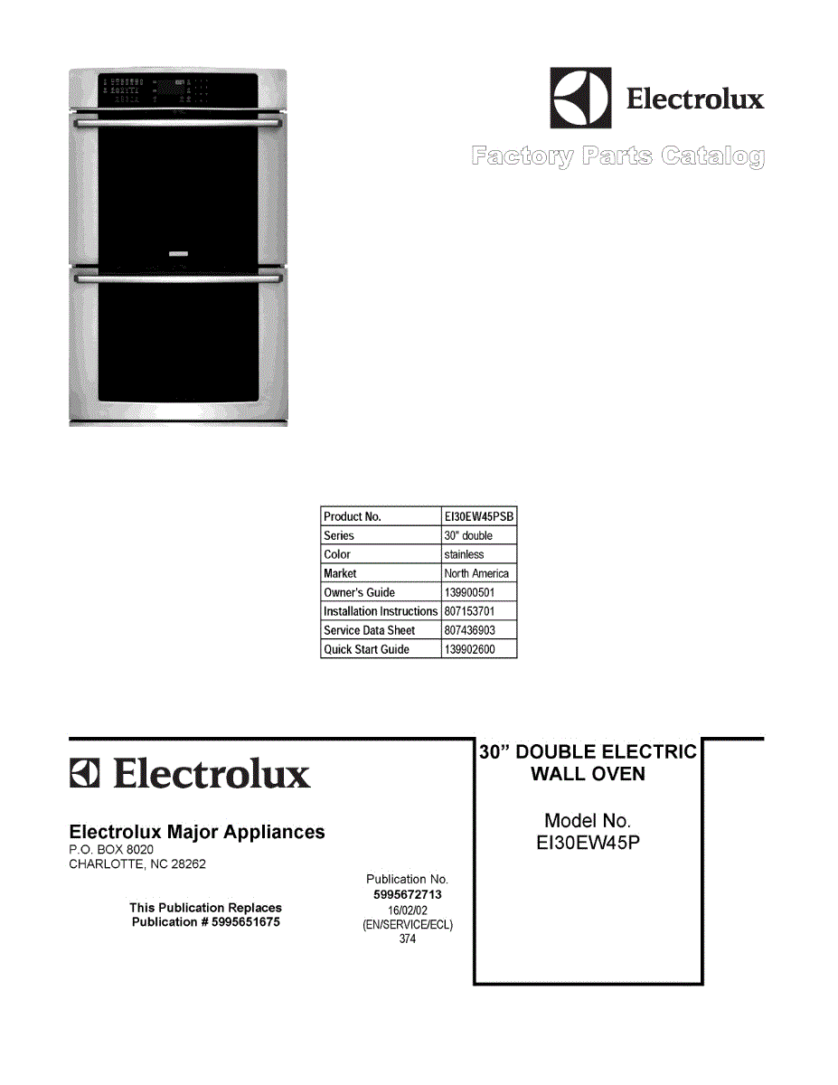 Parts for Electrolux EI30EW45PSB: 01 - Cover Sheet Parts