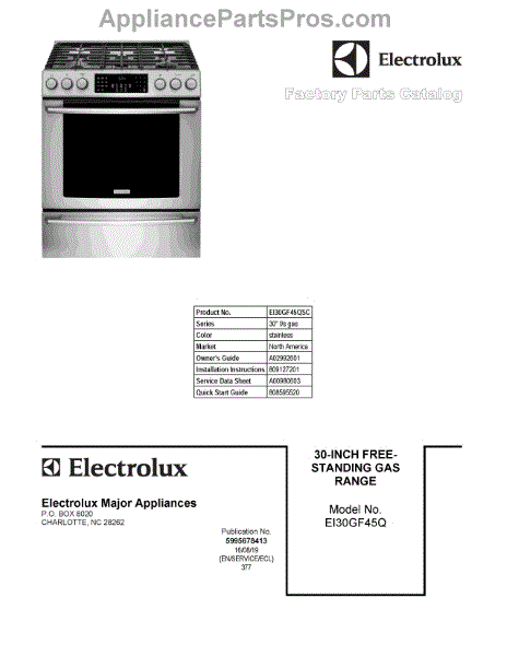 Parts for Electrolux EI30GF45QSC: 01 - Cover Sheet Parts