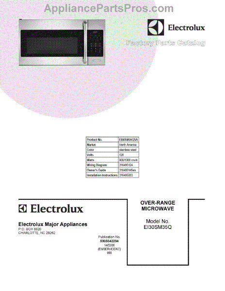Electrolux Microwave Parts
