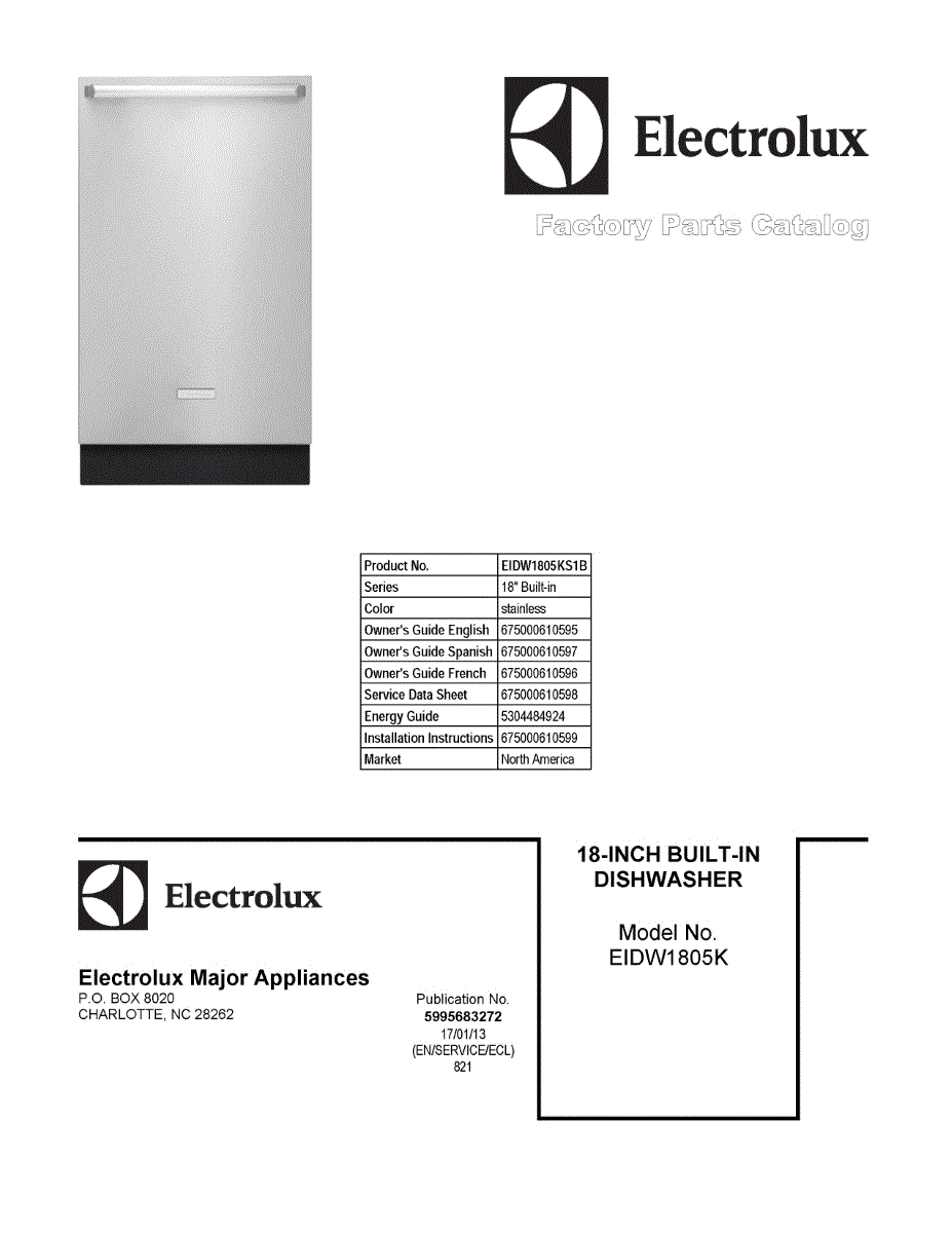 Parts for Electrolux EIDW1805KS1B: 01 - Cover Sheet Parts