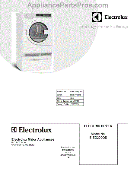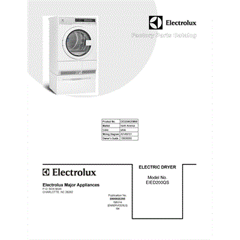 Parts for Electrolux EIED200QSW00: 01 - Cover Sheet Parts