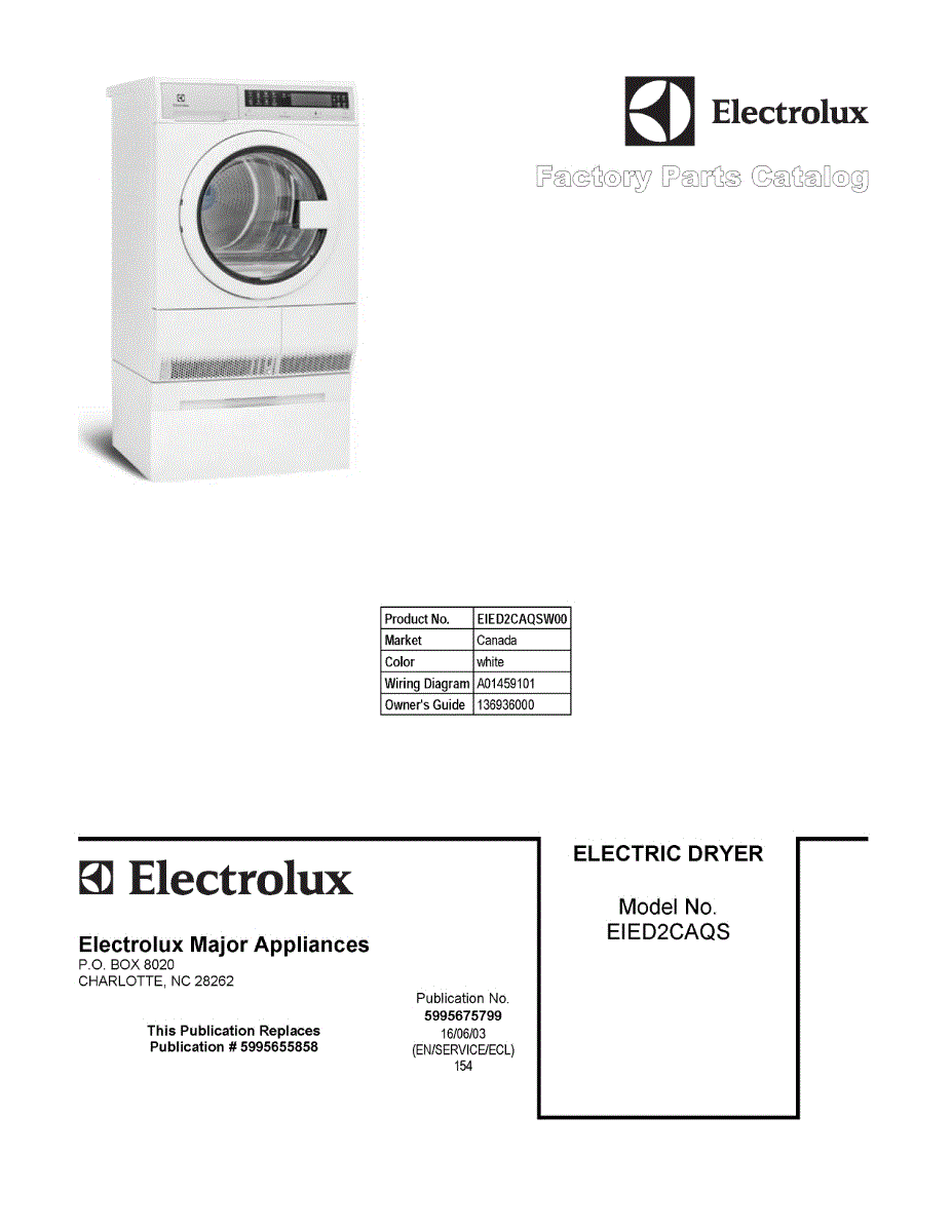 Parts for Electrolux EIED2CAQSW00: 01 - Cover Sheet Parts