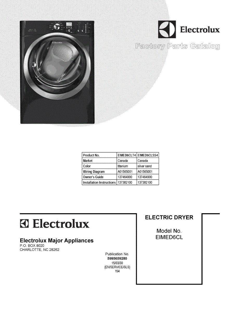 Parts for Electrolux EIMED6CLT4: 01 - Cover Sheet Parts