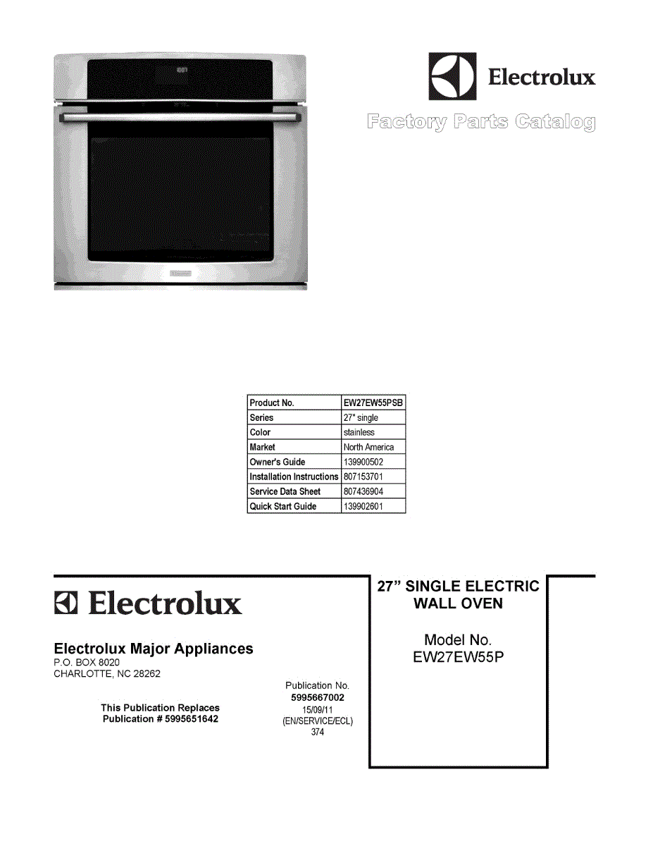 Parts for Electrolux EW27EW55PSB: 01 - Cover Sheet Parts