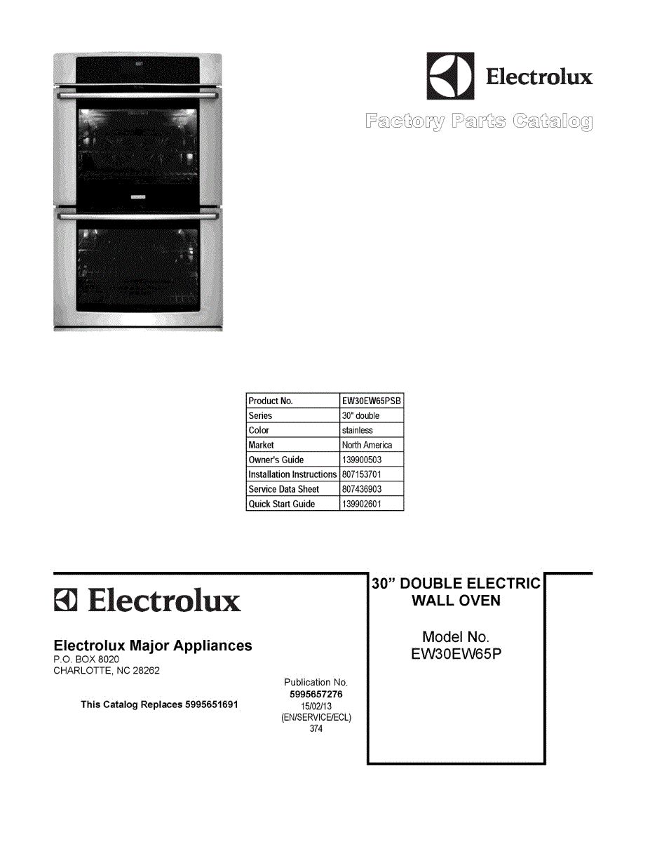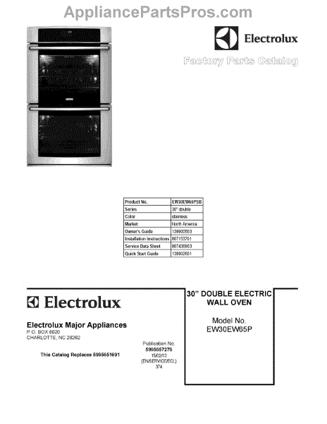 Parts for Electrolux EW30EW65PSB: 01 - Cover Sheet Parts