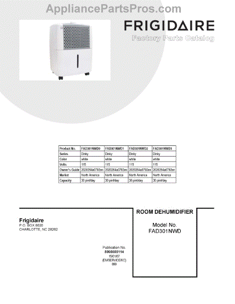 Electrolux Dehumidifier Parts
