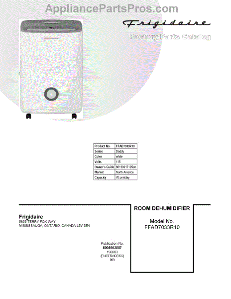 Electrolux Dehumidifier Parts
