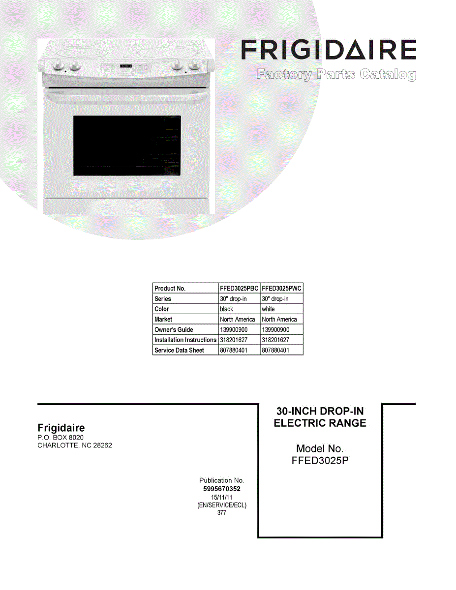 Parts for Electrolux FFED3025PBC: 01 - Cover Sheet Parts