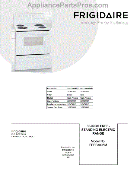 Parts for Electrolux FFEF3005MWD: 01 - Cover Sheet Parts