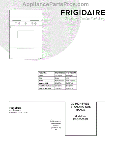 Parts for Electrolux FFGF3005MWC: 01 - Cover Sheet Parts