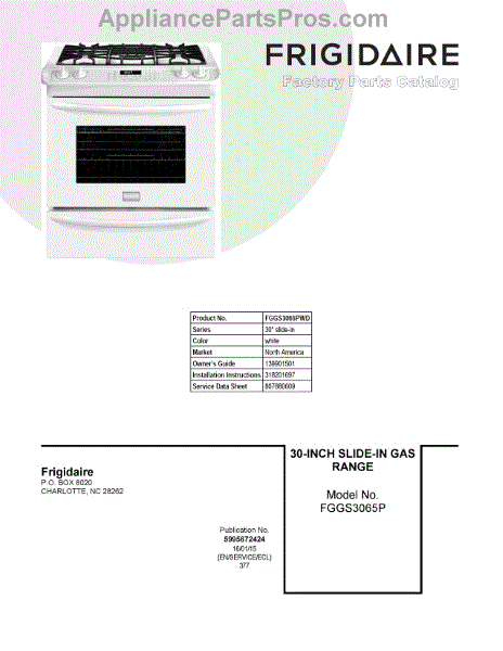 Parts for FGGS3065PWD