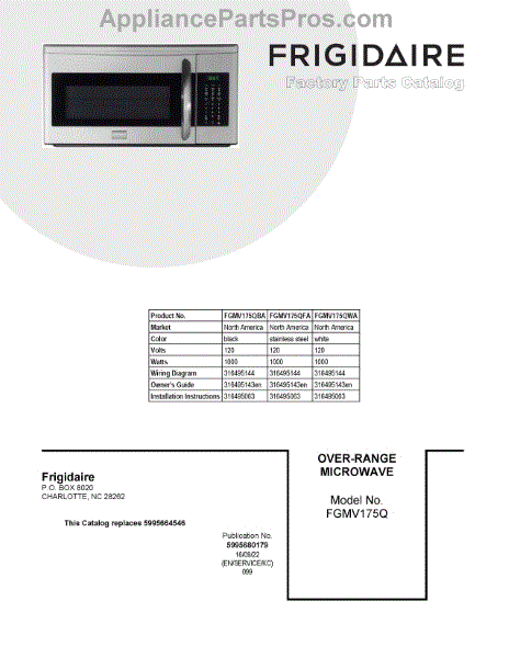 Parts for Electrolux FGMV175QBA: 01 - Cover Sheet Parts