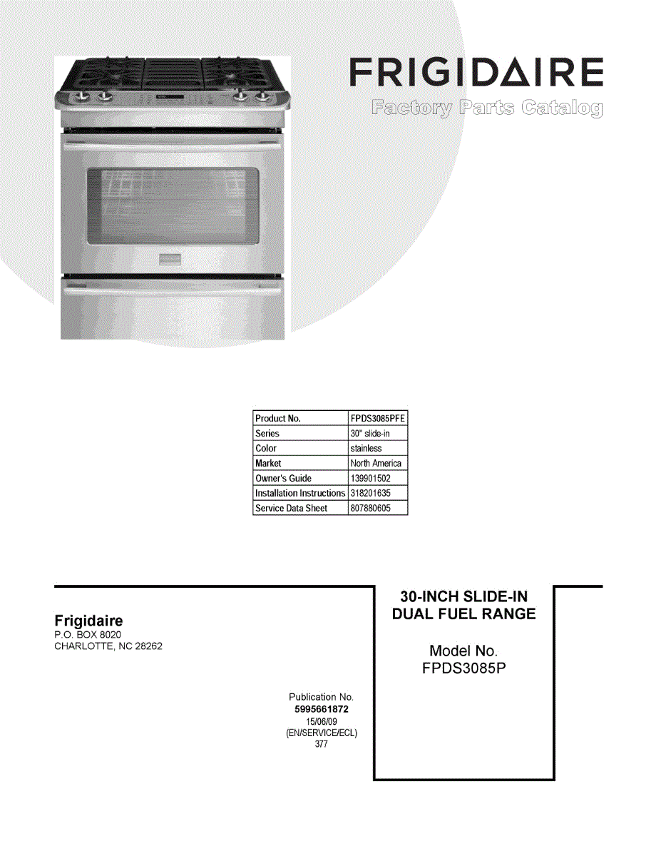 Parts for Electrolux FPDS3085PFE: 01 - Cover Sheet Parts