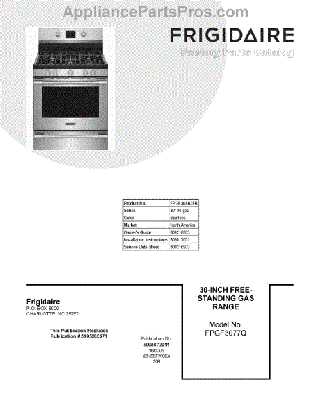 Parts for Electrolux FPGF3077QFB: 01 - Cover Sheet Parts